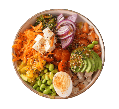 Es muy simple, crea tu poke perfecto seleccionando los ingredientes que más te gusten. Elige el tamaño y las bases que prefieras, luego escoge tus proteínas y salsas favoritas. Por último, añade tus acompañantes y toppings ideales.